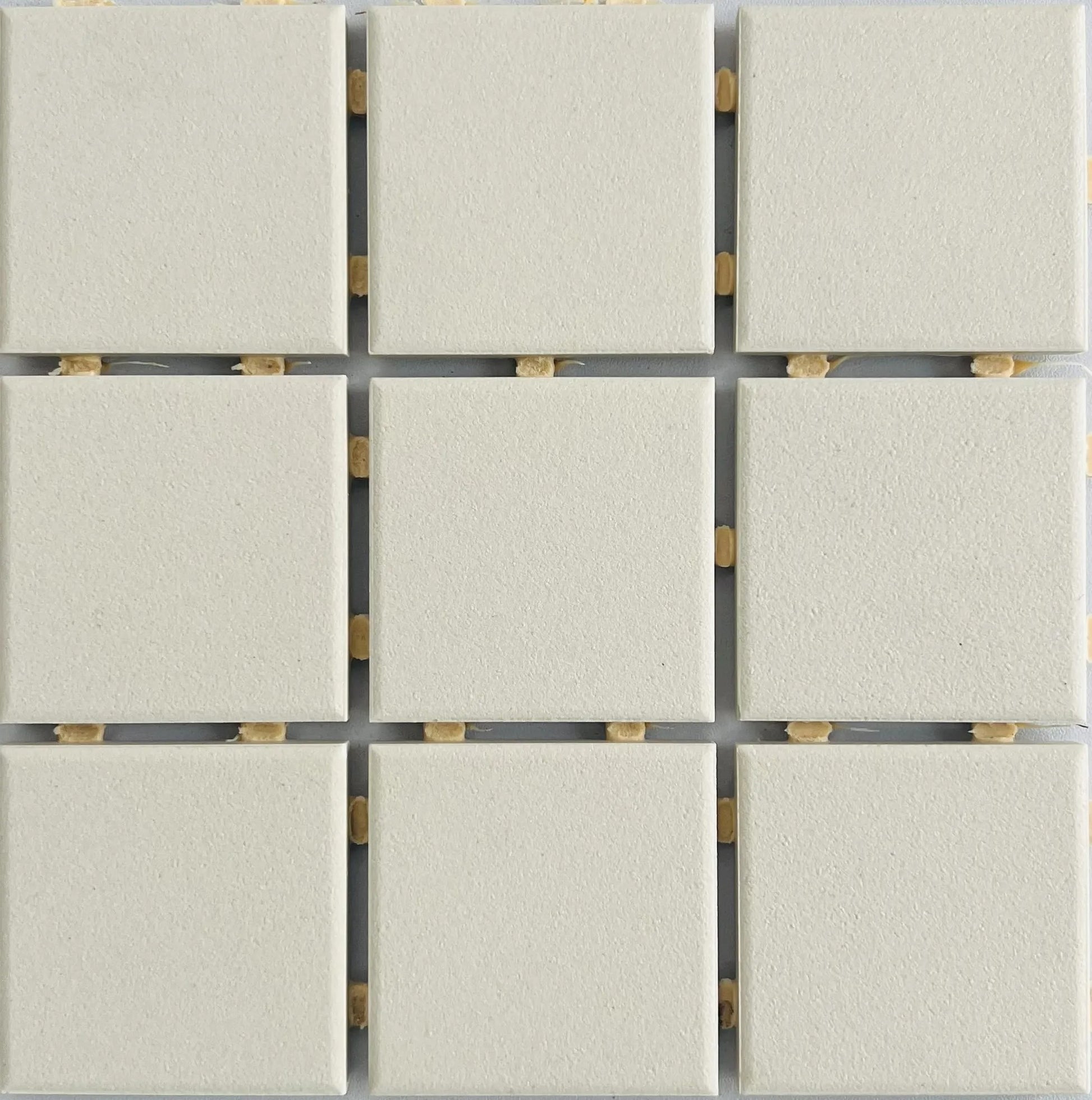 The Suki range of full body porcelain tiles. is frost proof, suitable for floor and wall, ok for swimming pools. Antislip finish. Each tile is 4.8×4.8cm mounted on 30.6×30.6cm sheet. The dot mounted mosaics are particularly suitable for swimming pools because they allow full adhesion of the adhesive to the back of the tile. Perfect for showers and wet areas.
