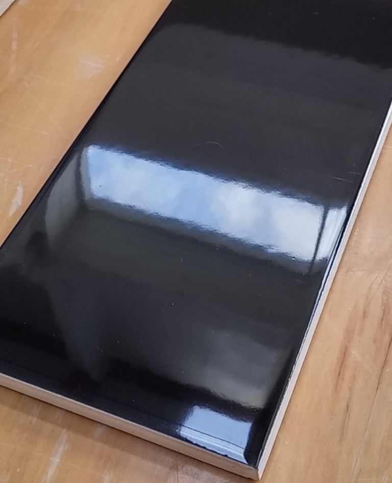 Glazed ceramic wall tile, black gloss finish. Classic subway look. 100x300mm. Perfect for wet areas, kitchen bathroom and splashbacks